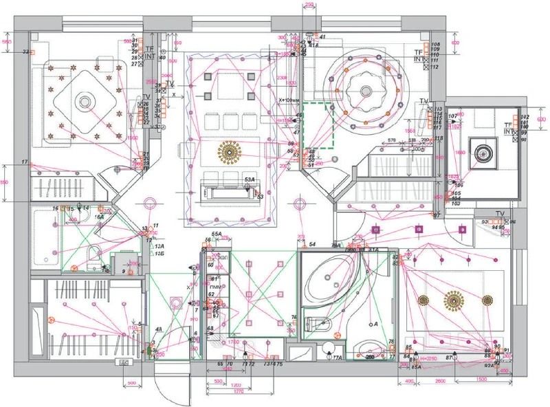 Начертим где и сколько розеток, откуда включаются те или иные светильники. Подумаем, как все сделать максимально удобно и эффективно. Предоставим все планы, чтобы у строителей не возникало вопросов в процессе ремонта.