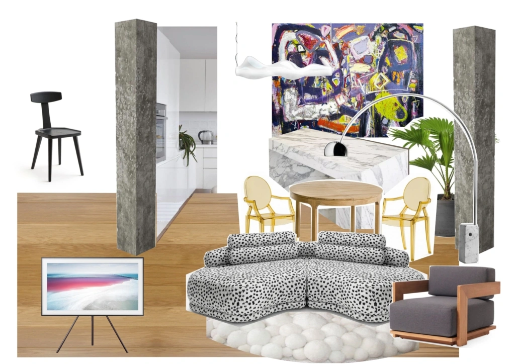 Вы знакомитесь с общей идеей и предполагаемой стилистикой помещений на 2D коллажах.